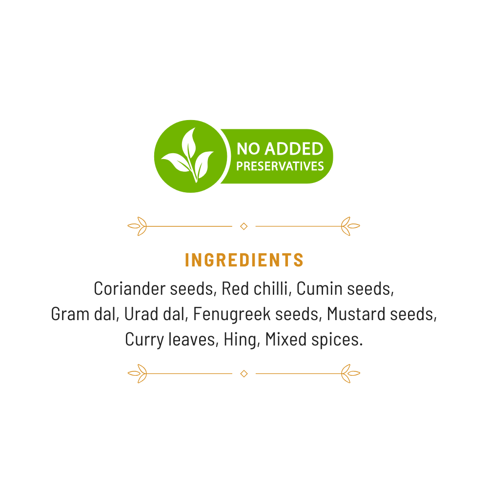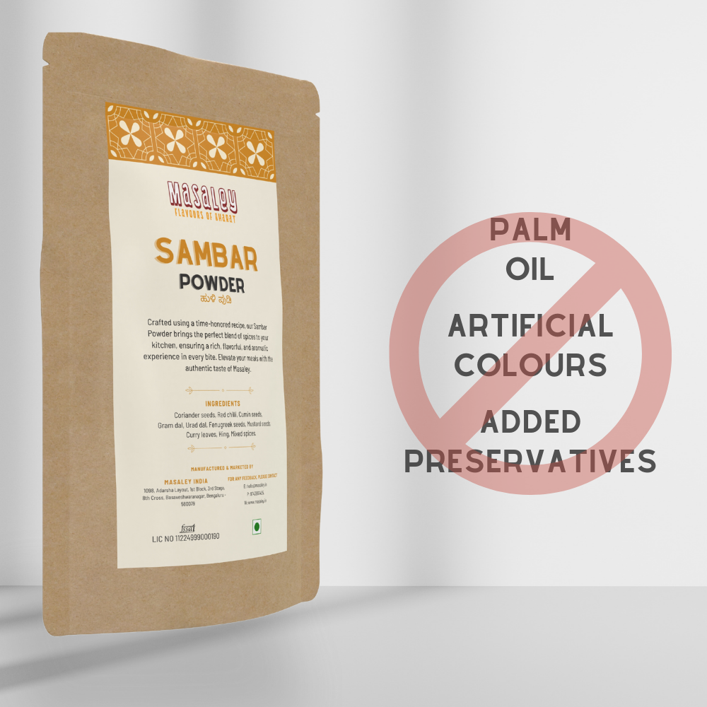 Crafted with high-quality ingredients that are handpicked for their unique flavours, Masaley's sambar powder is a versatile and essential ingredient in any South Indian kitchen. Whether you are a seasoned cook or a beginner, Masaley's sambar powder is easy to use and will help you prepare a delicious and healthy sambar in no time.